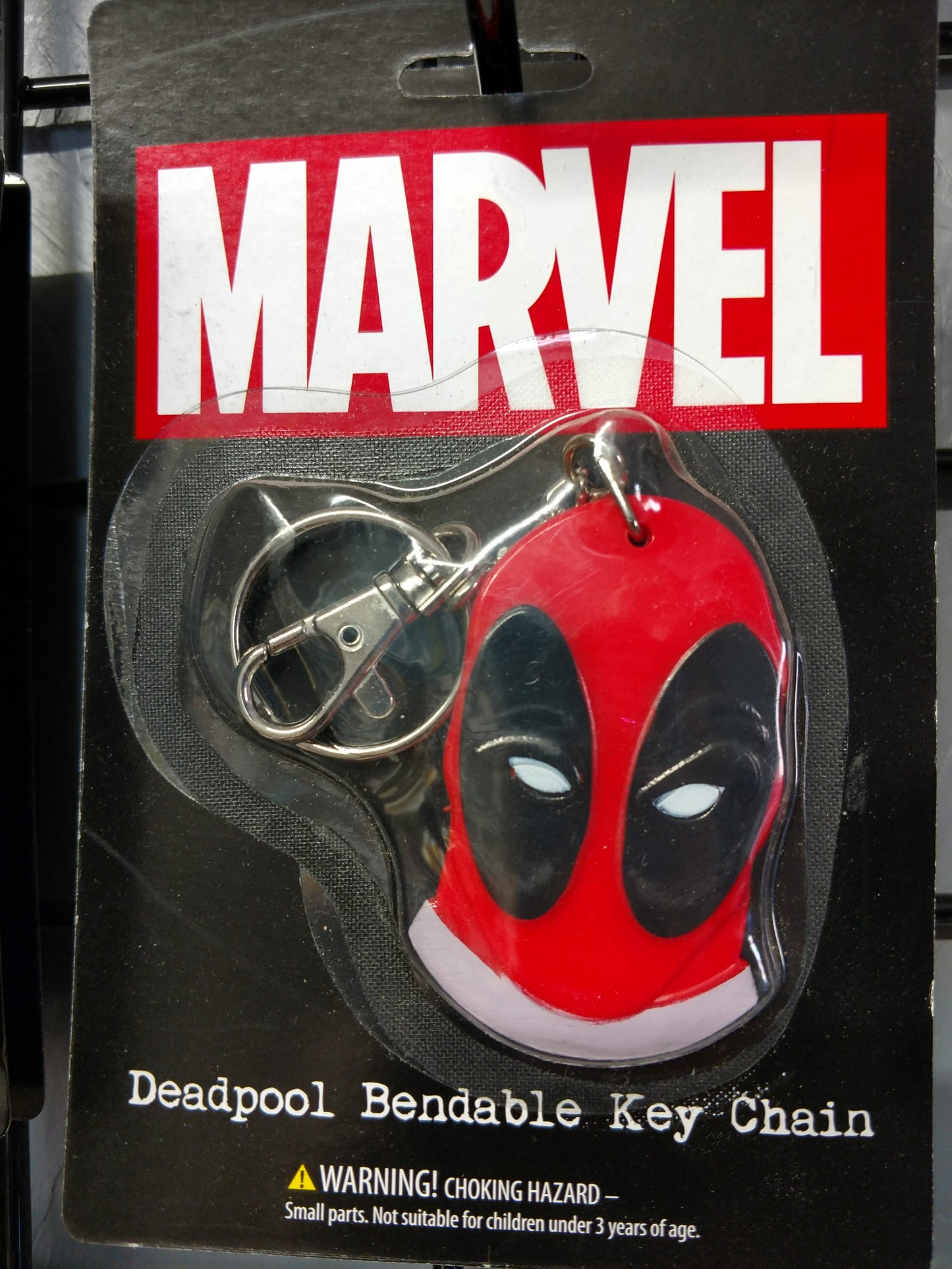 Two-sided soft PVC bendable 3 inch Deadpool face key chain. This product is manufactured in China. This product adds a great value.